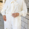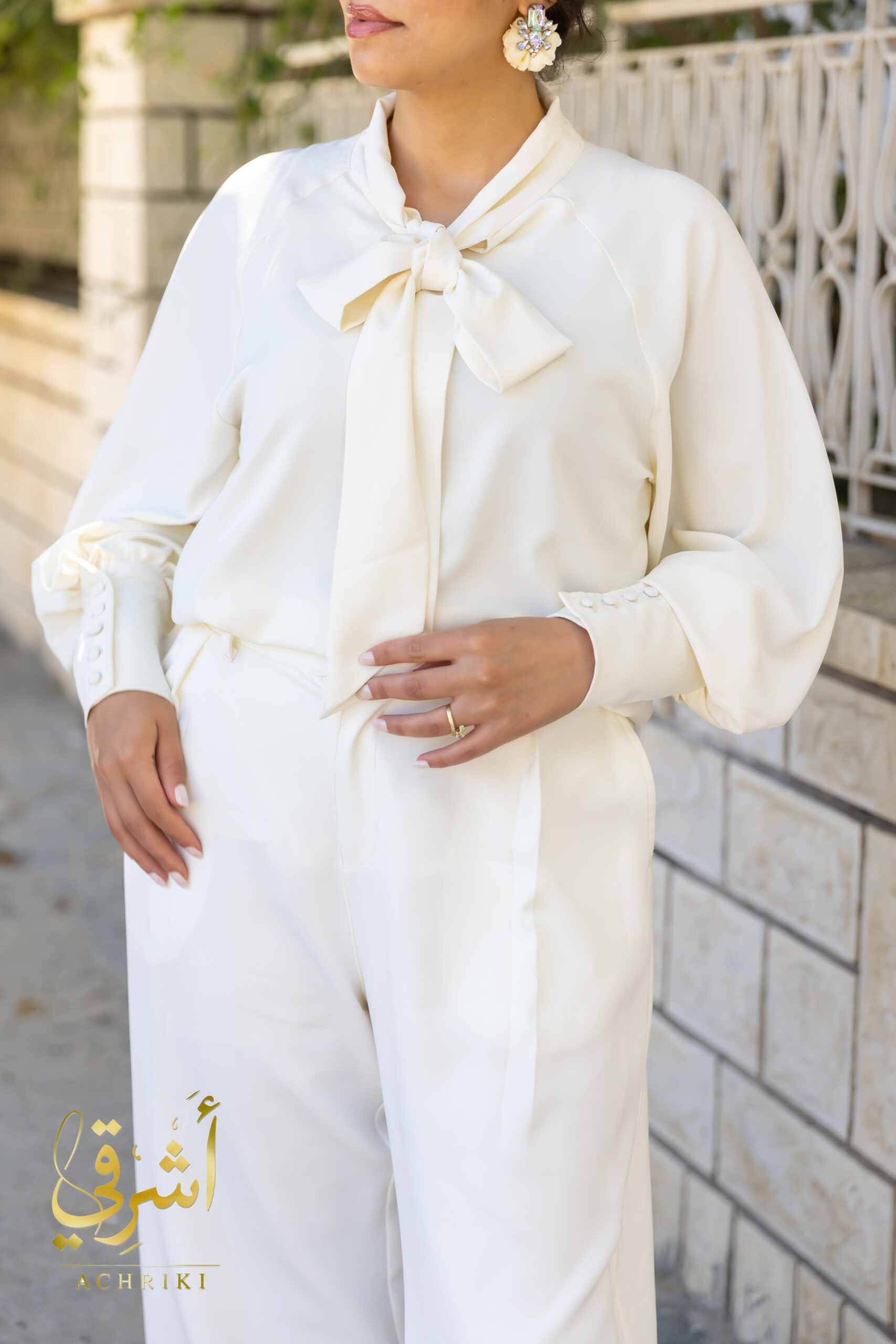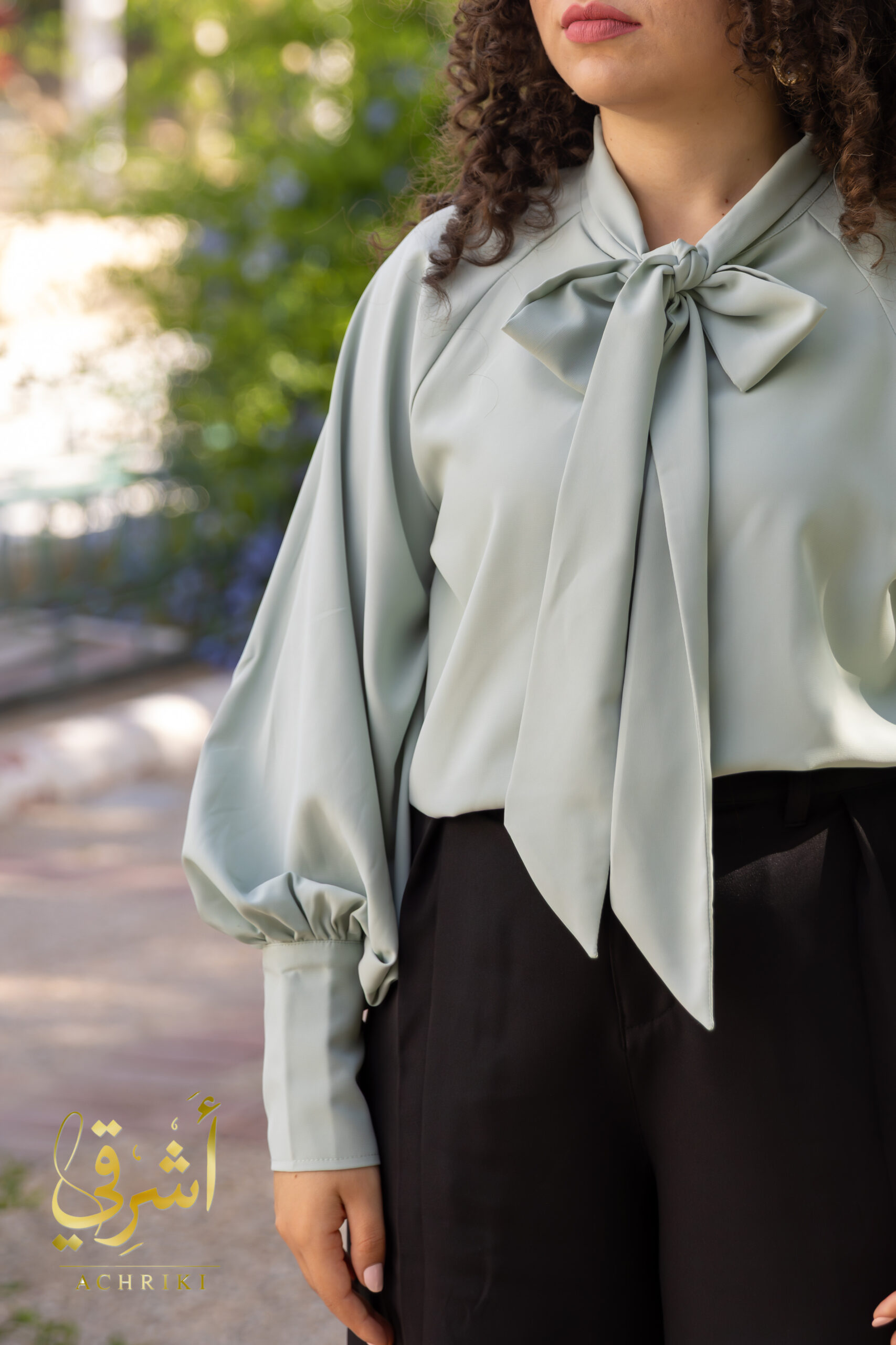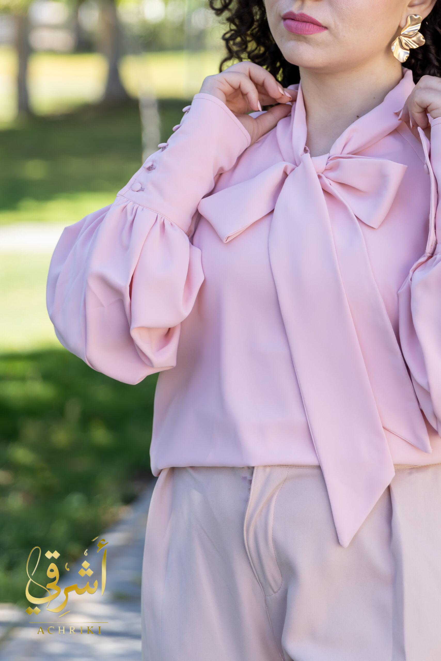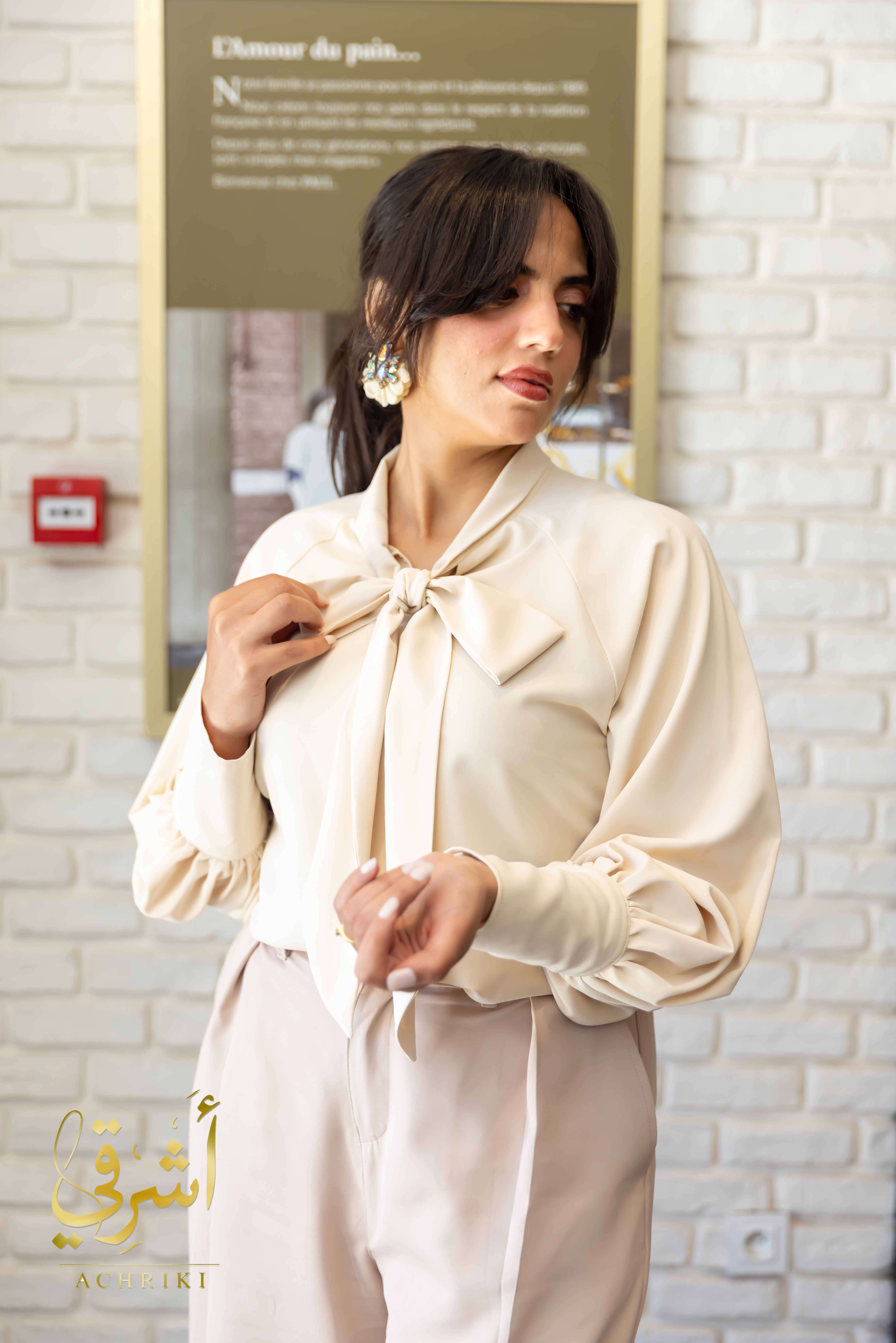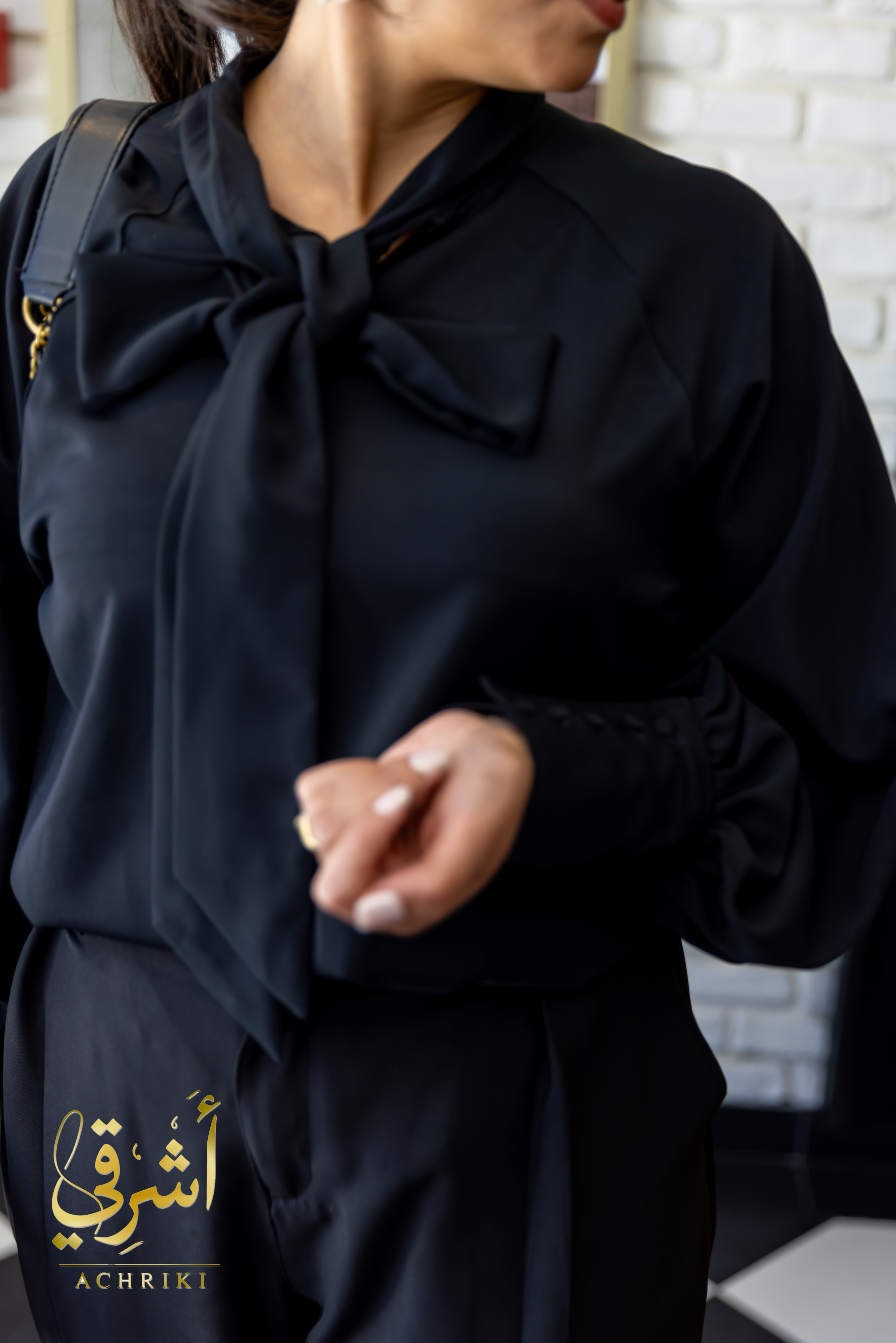Sublimez votre style avec une touche de grâce et de raffinement ! Notre blouse en crêpe premium, rehaussée d’un délicat nœud lavallière, est l’alliée parfaite pour révéler votre féminité avec élégance.